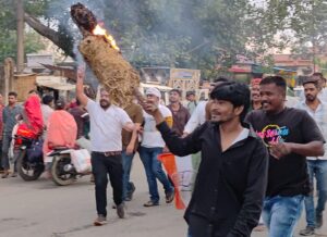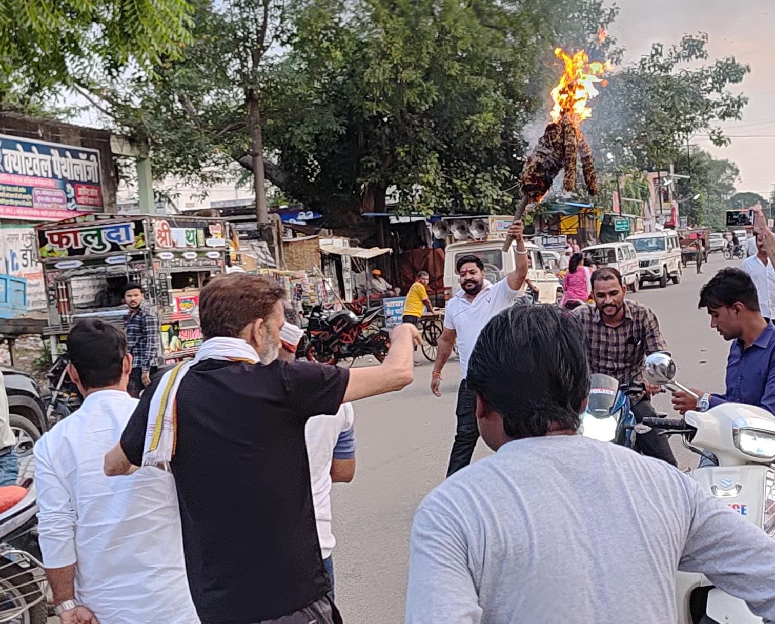 दमोह में कांग्रेस ने सरकार की लापरवाही के विरोध में किया पुतला दहन, नायब तहसीलदार को सौंपा ज्ञापन