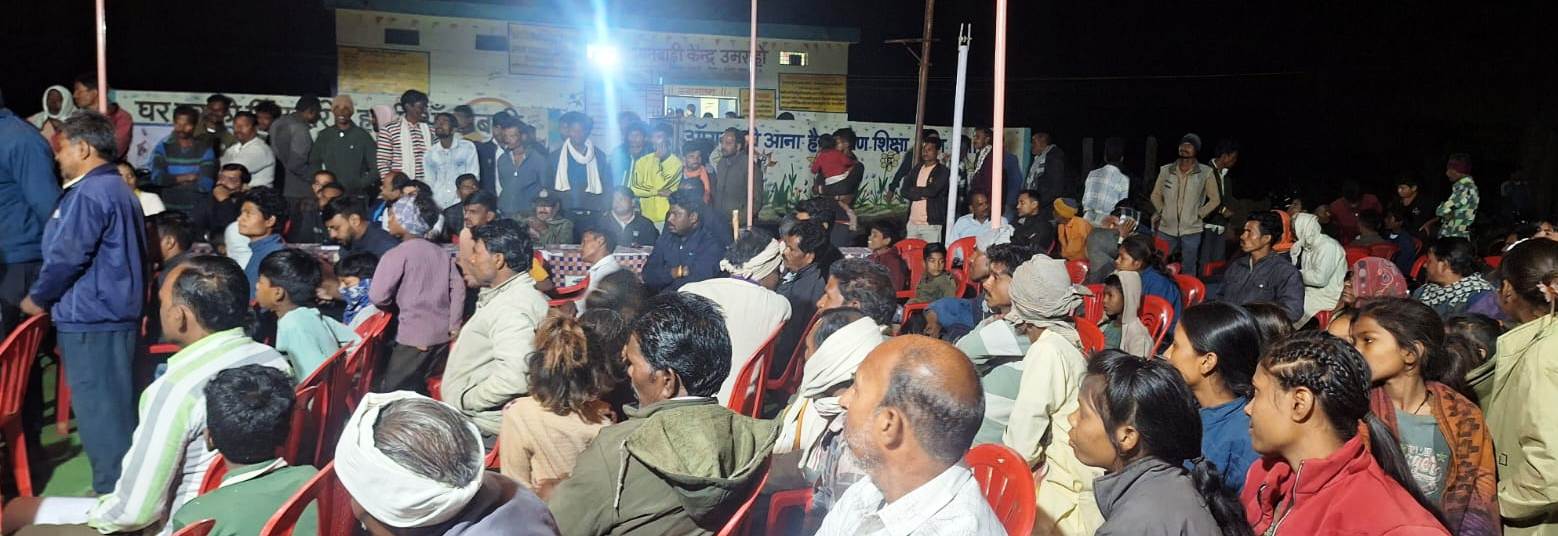 दमोह कलेक्टर सुधीर कुमार कोचर भगवान बिरसा मुंडा जयंती के अवसर पर ग्राम उमराहो में आयोजित रात्रि जन चौपाल में शामिल हो रहे हैं।