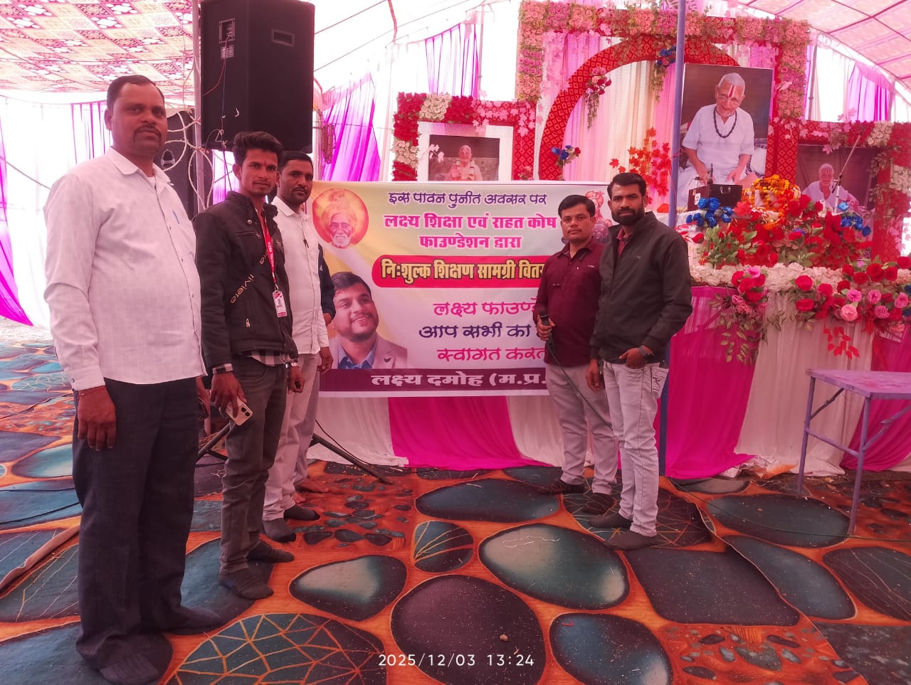 दमोह बटियागढ़ तहसील के ग्राम घूगस में जारी 11 दिवसीय श्री सीताराम महायज्ञ के दसवें दिन श्रद्धा और सेवा का अद्भुत संगम देखने को मिला।लक्ष्य शिक्षा एंड राहत कोष फाउंडेशन (दमोह टीम) ने ग्रामीण अंचलों से आए 700 से अधिक छात्र-छात्राओं को निःशुल्क शिक्षण सामग्री वितरण कर बच्चों के भविष्य में नई रोशनी भरी।