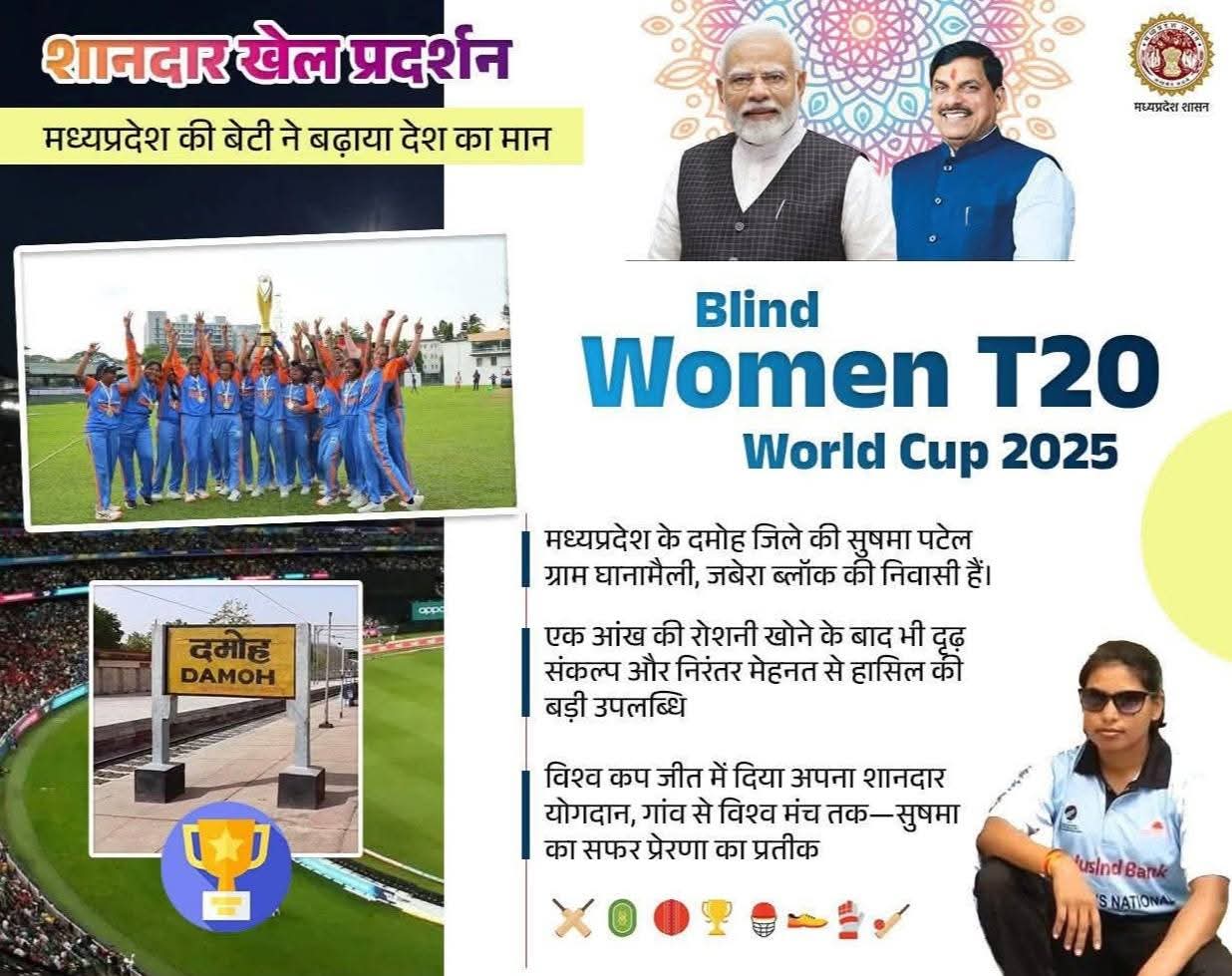 दमोह जिले का गौरव बनी भारतीय महिला ब्लाइंड क्रिकेट विश्वकप विजेता टीम की सदस्य
