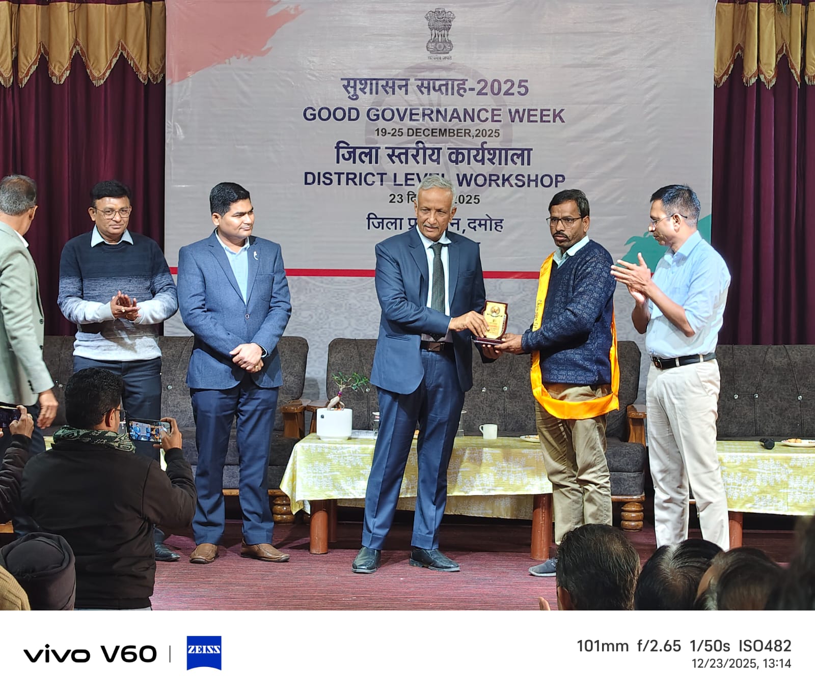 इस उपलब्धि के उपलक्ष्य में आयोजित सम्मान समारोह में श्री अहिरवार को पूर्व सागर संभाग आयुक्त महोदय एवं कलेक्टर दमोह द्वारा प्रशस्ति पत्र एवं सम्मान प्रदान कर सम्मानित किया गया।