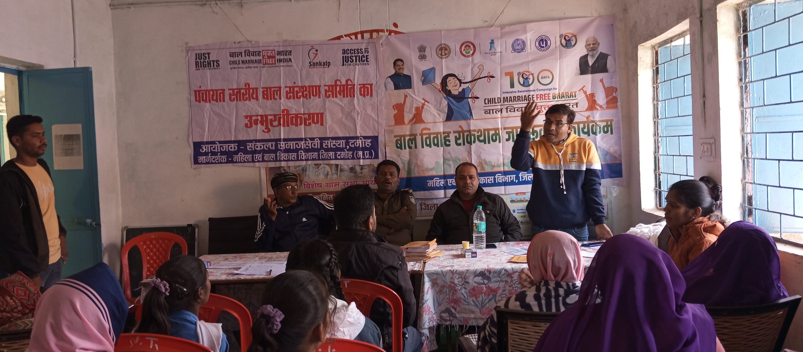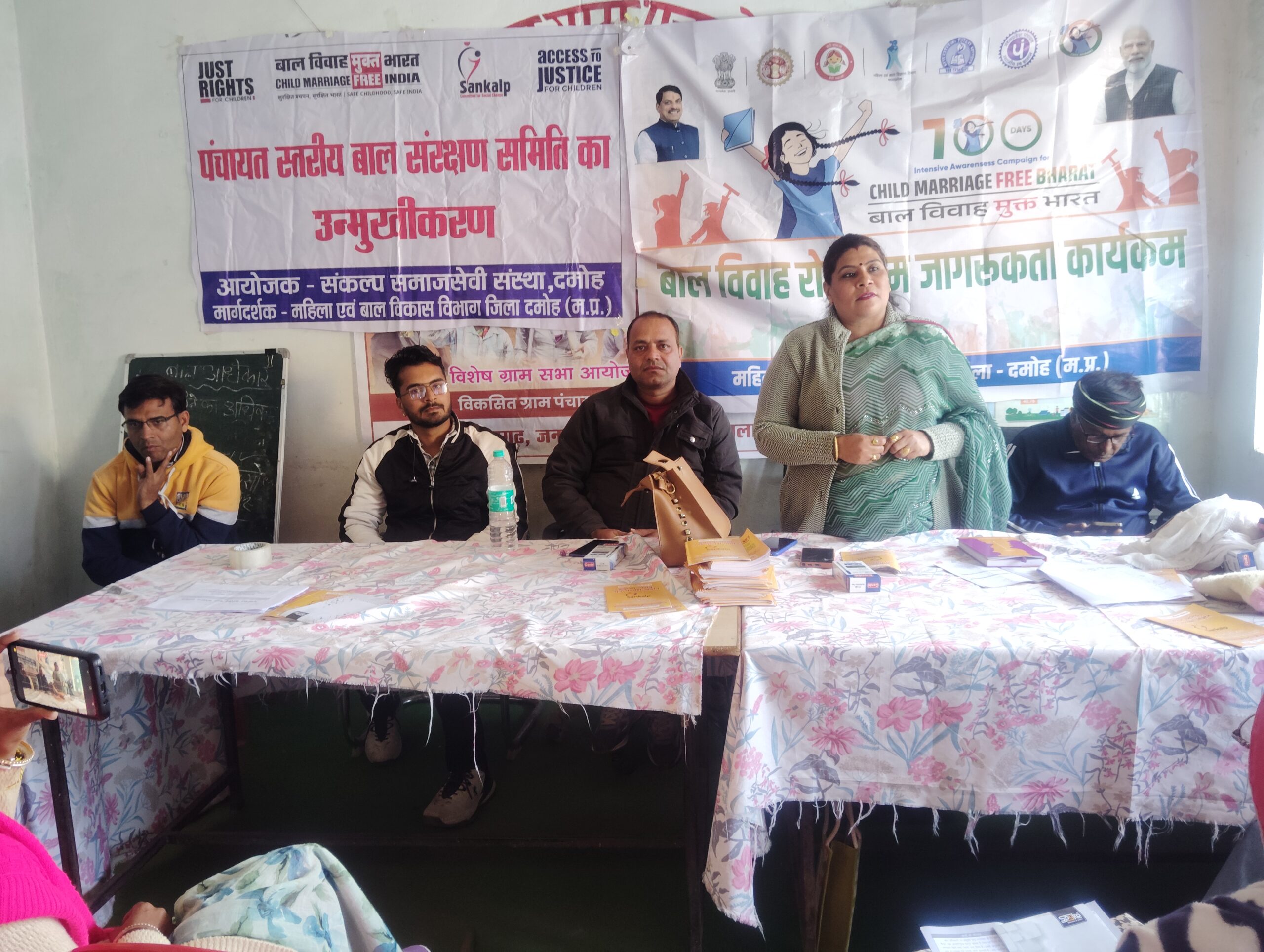 दमोह/तेजगढ़ बाल विवाह की रोकथाम हेतु भारत सरकार द्वारा संचालित 100 दिवसीय अभियान को सफल बनाने के उद्देश्य से संकल्प समाजसेवी संस्था दमोह एवं महिला एवं बाल विकास विभाग दमोह के संयुक्त तत्वावधान में एक्सिस टू जस्टिस परियोजना के अंतर्गत ग्राम पंचायत भवन तेजगढ़ में पंचायत स्तरीय बाल संरक्षण समितियों का एक दिवसीय प्रशिक्षण कार्यक्रम आयोजित किया गया।