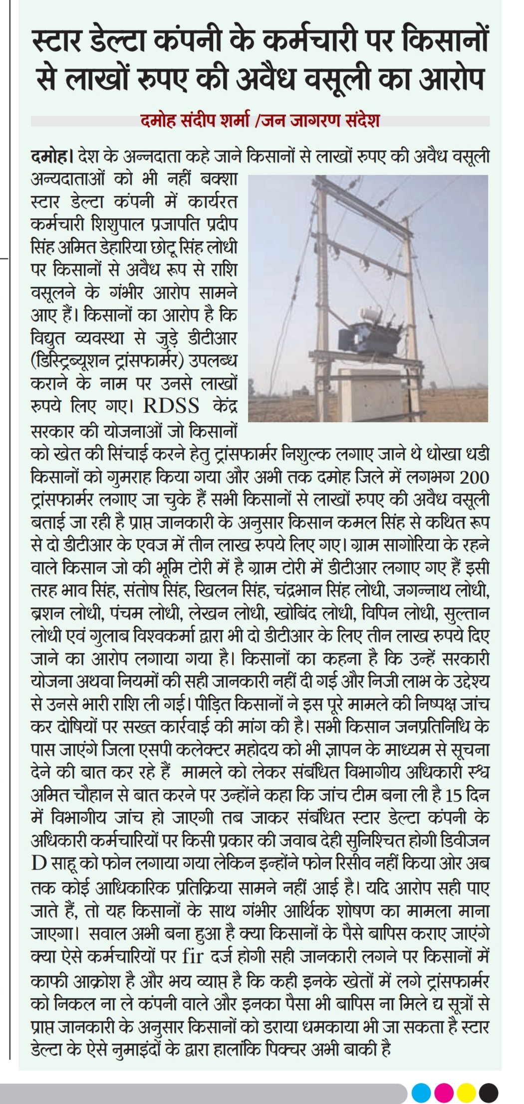 किसानों ने बताया कि छोटू सिंह लोधी नामक व्यक्ति ने ट्रांसफार्मर लगवाने के नाम पर उनसे लाखों रुपये की अवैध वसूली की।