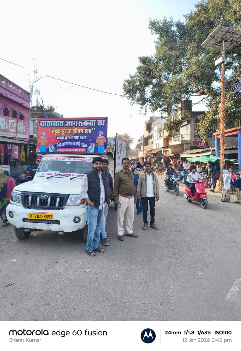 इसी क्रम में जिला दमोह में सड़क दुर्घटनाओं की रोकथाम और नागरिकों की सुरक्षा सुनिश्चित करने के उद्देश्य से निरंतर यातायात जागरूकता अभियान चलाया जा रहा है।