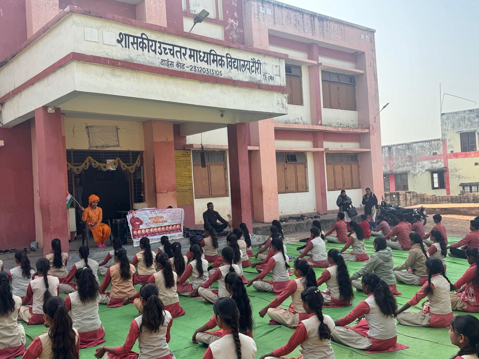 दमोह। राष्ट्रीय युवा दिवस के पावन अवसर पर कस्तूरबा गांधी बालिका विद्यालय, टोरी में छात्राओं के शारीरिक, मानसिक एवं नैतिक विकास को ध्यान में रखते हुए विविध प्रेरणादायक कार्यक्रमों का आयोजन किया गया। कार्यक्रम की शुरुआत प्रातःकाल 2 किलोमीटर की मैदानी दौड़ से हुई,
