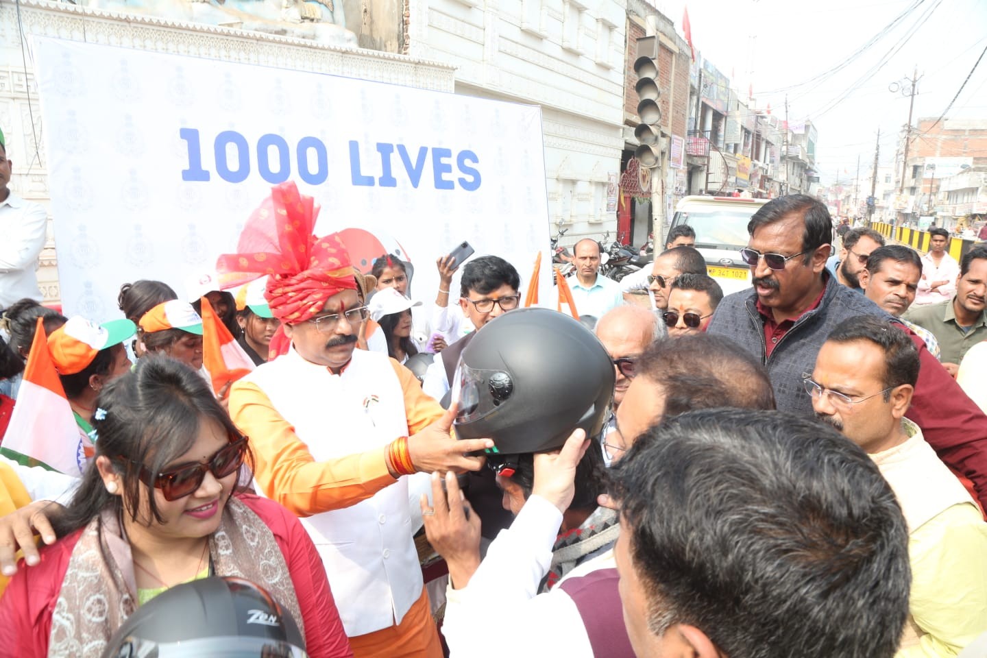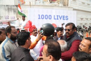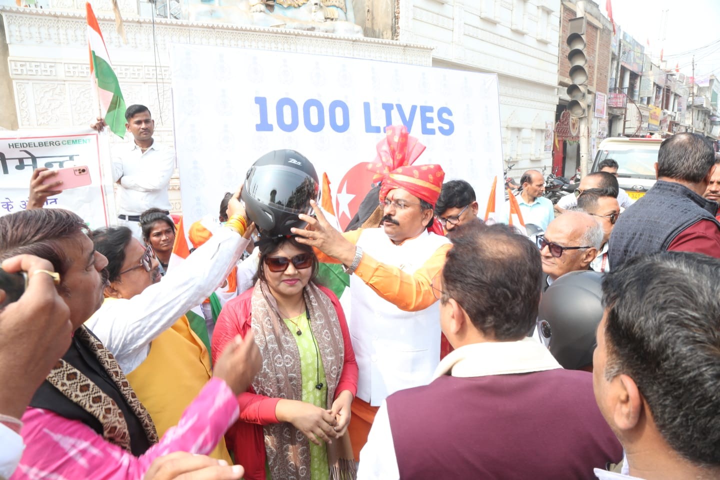 *राज्यमंत्री श्री लोधी ने घंटाघर पर दो पहिया वाहन चालकों को हेलमेट का किया वितरण*