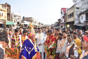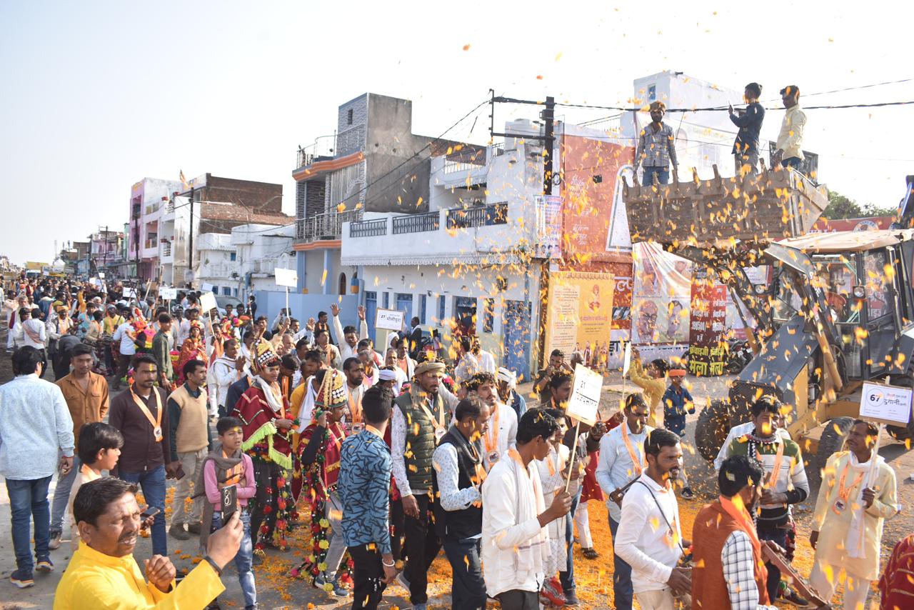नोहटा नगर में निकाली गई विशाल सांस्कृतिक चेतना यात्रा में 70 से अधिक टोलियों ने पारंपरिक वेशभूषा में बुंदेली लोकनृत्य ‘राई’ की मनमोहक प्रस्तुतियाँ दीं। ढोल-नगाड़ों की गूंज, लोक धुनों और जयघोष के बीच यात्रा नगर के प्रमुख मार्गों से होती हुई महोत्सव स्थल पहुँची। नगरवासियों ने जेसीबी के माध्यम से पुष्प वर्षा कर यात्रा का भव्य स्वागत किया, जिससे पूरा नगर उत्साह और उल्लास से सराबोर हो गया।