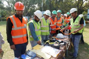 जागरूकता को और मजबूत करने और सुरक्षित कार्य प्रणालियों को बढ़ावा देने के लिए साइट पर PPE (व्यक्तिगत सुरक्षा उपकरण) का व्यावहारिक प्रदर्शन और एक प्रदर्शनी का भी आयोजन किया गया।