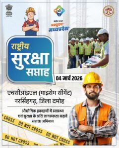 नरसिंहगढ़ स्थित औद्योगिक इकाई में आयोजित ‘राष्ट्रीय सुरक्षा सप्ताह–2026’ का समापन समारोह बड़े उत्साह, जागरूकता और सुरक्षा के प्रति मजबूत प्रतिबद्धता के साथ सम्पन्न हुआ। पूरे सप्ताह चले इस विशेष अभियान के समापन अवसर पर आयोजित कार्यक्रम में यूनिट हेड श्री सुरेश दुबे, सुरक्षा प्रमुख श्री चिराग गजेरा, इकाई के वरिष्ठ अधिकारी, विभागाध्यक्ष, कर्मचारी तथा बड़ी संख्या में अनुबंध श्रमिक उपस्थित रहे। कार्यक्रम का मुख्य उद्देश्य कर्मचारियों में सुरक्षा के प्रति जागरूकता बढ़ाना तथा कार्यस्थल पर सुरक्षित वातावरण सुनिश्चित करना था।