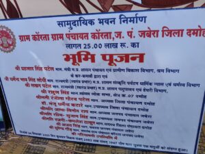 उन्होंने आगे बताया ग्राम कोंरता में 25 लाख रुपये की लागत से बनने वाले सामुदायिक भवन का भूमिपूजन किया गया। सामुदायिक भवन का निर्माण ग्रामवासियों के लिए सामाजिक, सांस्कृतिक एवं पारिवारिक कार्यक्रमों के आयोजन हेतु एक महत्वपूर्ण स्थान उपलब्ध कराएगा। इससे गांव में सामाजिक एकता और सामुदायिक गतिविधियों को बढ़ावा मिलेगा। इसी क्रम में 10 लाख रुपये की लागत से बनने वाली सी.सी. रोड का भी भूमिपूजन किया गया। इस सड़क के निर्माण से ग्रामवासियों को आवागमन में काफी सुविधा प्राप्त होगी तथा बरसात के समय होने वाली समस्याओं से भी राहत मिलेगी। बेहतर सड़क सुविधा से गांव का संपर्क मजबूत होगा और दैनिक जीवन की गतिविधियां अधिक सुगम बनेंगी।