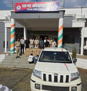 पुलिस अधीक्षक के निर्देश पर जिलेभर में अवैध शराब के परिवहन और बिक्री के खिलाफ अभियान चलाया जा रहा है। इसी क्रम में 22 मार्च 2026 को कोतवाली थाना प्रभारी निरीक्षक मनीष कुमार के नेतृत्व में पुलिस टीम को मुखबिर से सूचना मिली कि जबलपुर बायपास स्थित ठाकुर बाबा मंदिर के पास एक वाहन में अवैध शराब ले जाई जा रही है।