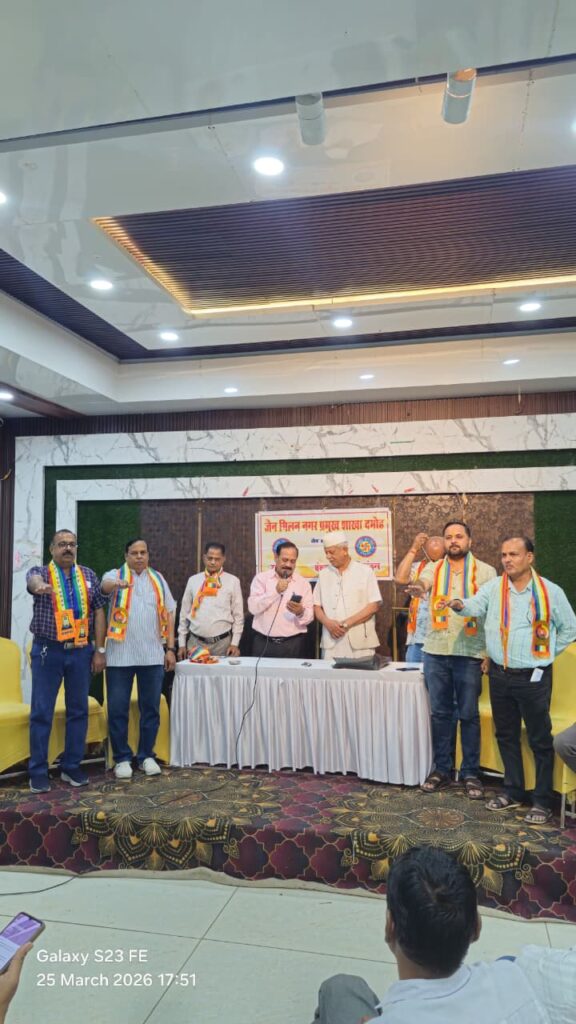 दमोह। जैन मिलन नगर प्रमुख शाखा दमोह की आवश्यक निर्वाचन बैठक गरिमामय, अनुशासित एवं सौहार्दपूर्ण वातावरण में सम्पन्न हुई। बैठक का शुभारंभ महावीर प्रार्थना से हुआ तथा समापन अर्हंत स्तुति के साथ किया गया।