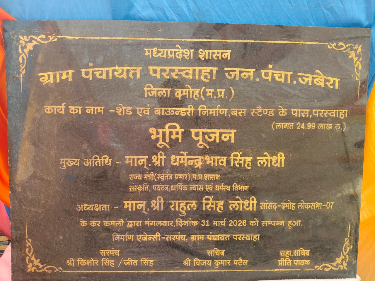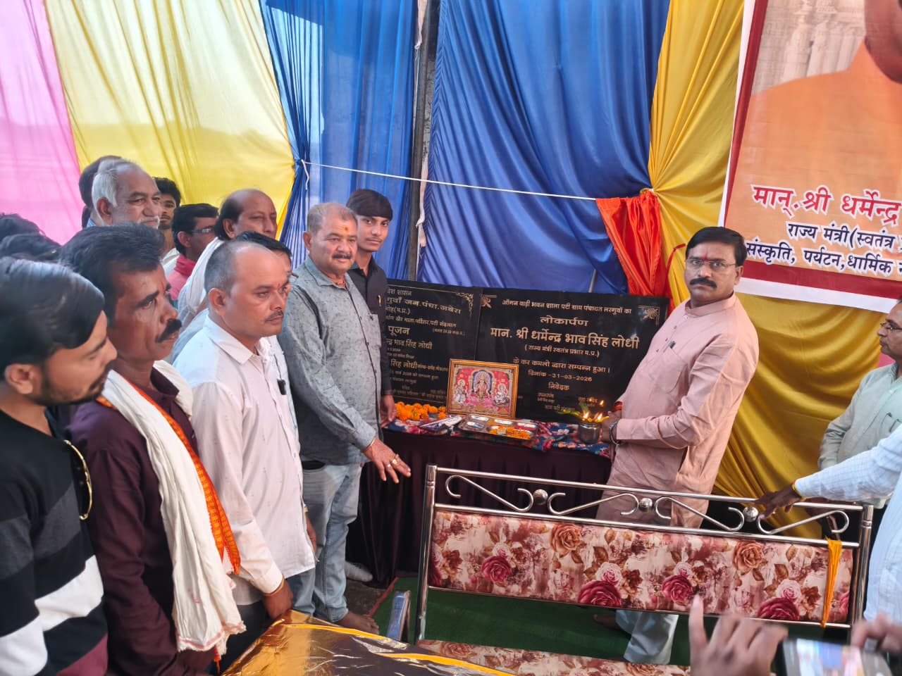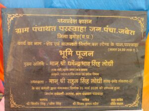 ग्राम परस्वाहा में 24.99 लाख रुपये से निर्माण होने वाले टीन शेड का प्रदेश के संस्कृति, पर्यटन, धार्मिक न्यास एवं धर्मस्व विभाग राज्यमंत्री (स्वतंत्र प्रभार) धर्मेन्द्र सिंह लोधी ने भूमिपूजन कर ग्राम वासियों सौगात दी। इसके पश्चात राज्यमंत्री लोधी ने ग्राम पंचायत पटी नंदलाल के ग्राम शालापटी पहुंचे, जहां उन्होंने खेर माता मन्दिर परिसर में 24.99 लाख रुपये की लागत से निर्माण होने वाले टीन शेड का भूमिपूजन कर 11.24 लाख रुपये की लागत से नवनिर्मित आंगनबाड़ी केंद्र का लोकार्पण किया।