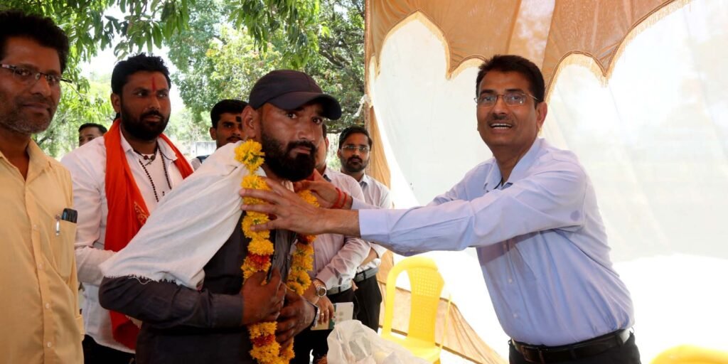दमोह। कलेक्टर प्रताप नारायण यादव आज गेंहूँ खरीदी केन्द्र समन्ना पहुँचे, जहां उन्होंने व्यवस्थाओं का जायजा लिया और उपस्थित किसानों से सीधे संवाद किया। इस दौरान उन्होंने किसानों का फूल-माला एवं श्रीफल भेंट कर सम्मान भी किया।