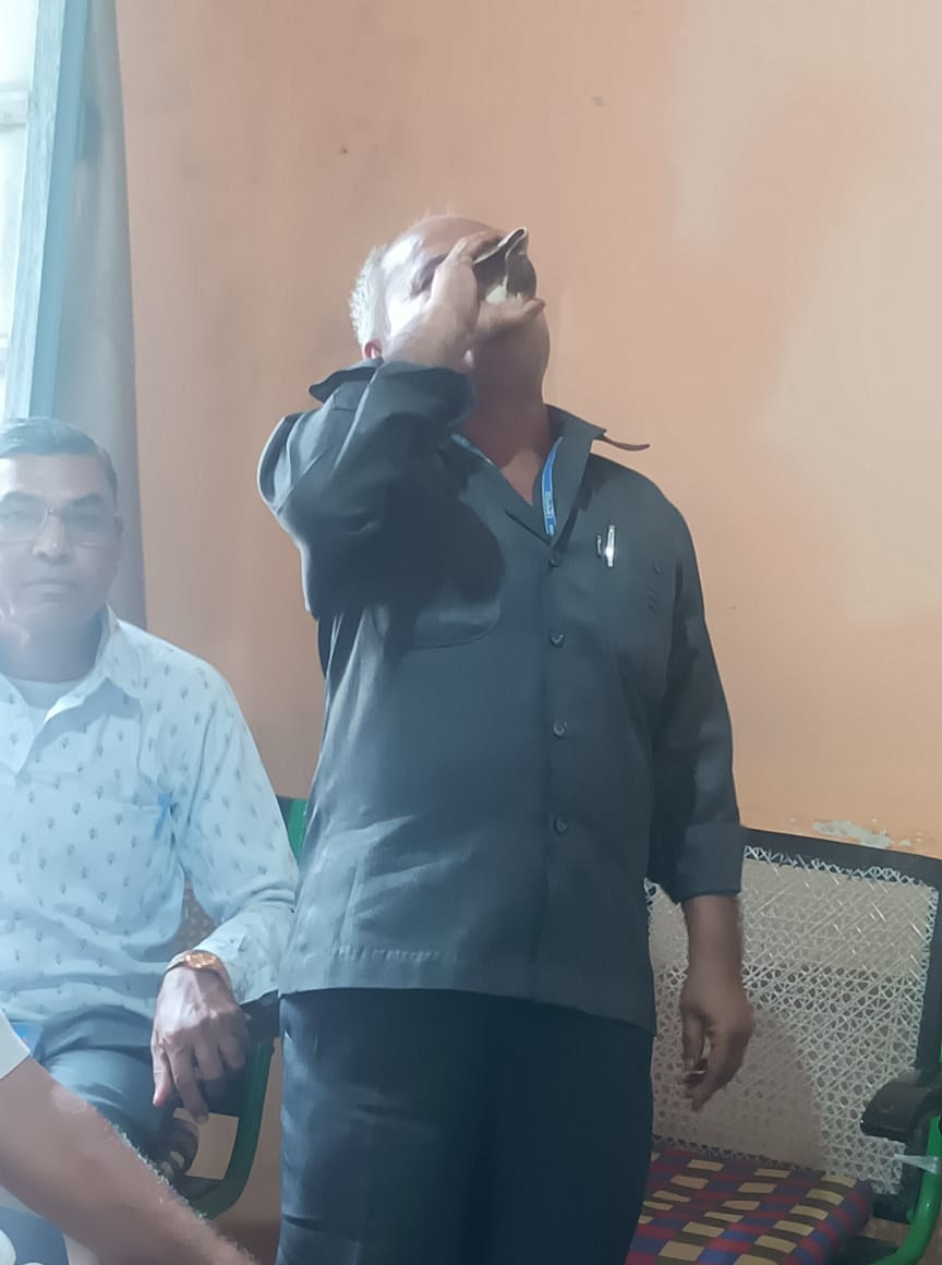 दमोह जिले में आज बैठक का प्रारंभ हुआ हटा अध्यक्ष रूप सिंह राजपूत द्वारा शंख नाद कर किया गया।