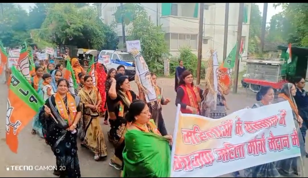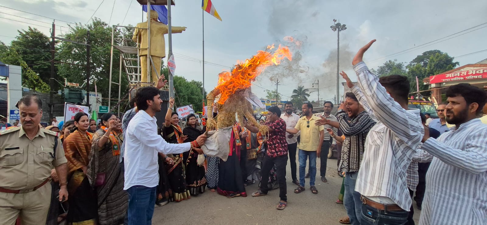 दमोह के अस्पताल चौक पर आयोजित पुतला दहन कार्यक्रम के दौरान भाजपा महिला मोर्चा की कार्यकर्ताओं ने जमकर नारेबाजी की और चेतावनी दी कि ऐसे अपमानजनक बयानों को बिल्कुल भी बर्दाश्त नहीं किया जाएगा। विरोध प्रदर्शन के दौरान बड़ी संख्या में भाजपा महिला मोर्चा कार्यकर्ताओं की मौजूदगी रही। कार्यक्रम का सफल संचालन महिला मोर्चा जिला मंत्री आरती राय और आभार प्रदर्शन भाजपा की वरिष्ठ नेत्री मनीषा दुबे के द्वारा व्यक्त किया गया। इस दौरान प्रमुख रूप से शिखा जैन जिला अध्यक्ष महिला मोर्चा, प्रीति ठाकुर जनपद पंचायत अध्यक्ष,सुमन पटेल,केसर सूर्यवंशी, सुषमा विश्वकर्मा,रेनू रजक,राधा सोनी, आरती राय, सरस्वती, सुनीता सोनी,दुर्गेश मिश्रा, द्रौपदी,गीता पटेल, कविता साहू, माया सोनी,किरण रैकवार, आशारानी, ज्योति, प्रीति रैकवार, प्रीति मिश्रा सहित बड़ी संख्या में भाजपा महिला मोर्चा की कार्यकर्ताओं की मौजूदगी रही।