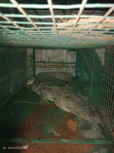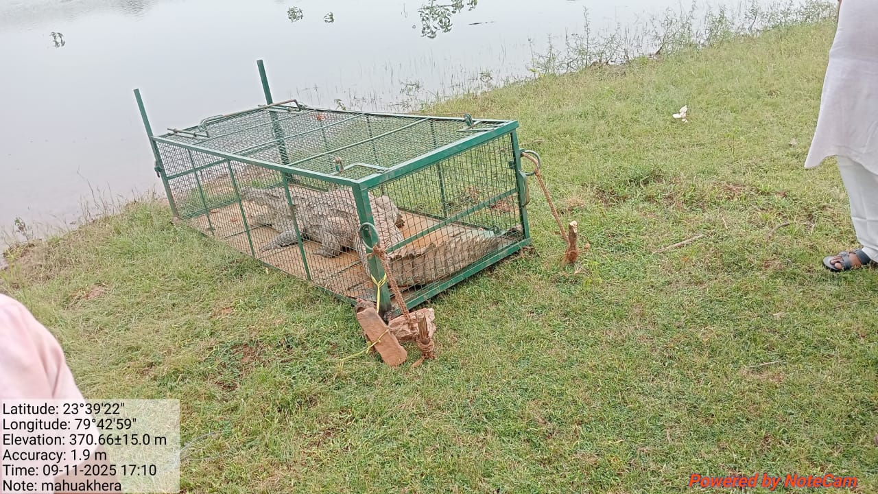 ग्राम महुआ खेड़ा, जनपद जबेरा, के तालाब से वन विभाग की टीम ने एक मगरमच्छ को बचाया था।