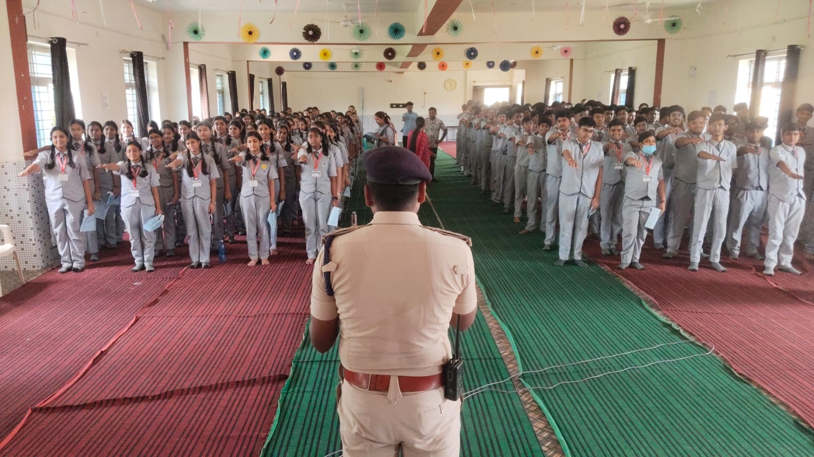 जागरूकता सेमिनार के दौरान, ट्रैफिक नियमों के बारे में जानकारी दी गई और पंपलेट बांटे गए।
