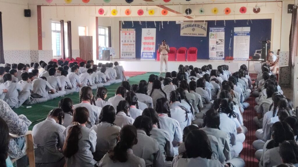 दमौह पुलिस ने ट्रैफिक नियमों के लिए जागरूकता अभियान चलाया है, जिसमें आज शहर के गुरु नानक उच्चतर माध्यमिक विद्यालय के लगभग 300 छात्रों और कर्मचारियों के लिए एक सेमिनार आयोजित किया गया। पुलिस मुख्यालय भोपाल और पुलिस अधीक्षक दमोह के निर्देशानुसार, ट्रैफिक नियमों के पालन के लिए 15 दिन का विशेष अभियान चलाया जा रहा है।