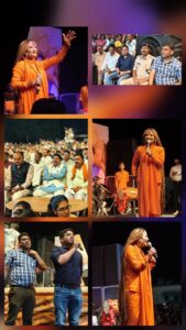 शहनाज़ अख्तर ने जैसे ही “मैया पांव पैजनिया…” और “ले चल मुझे महाकाल की नगरी में…” जैसे भजनों की स्वर लहरियाँ छेड़ीं, हजारों की संख्या में मौजूद श्रद्धालु झूम उठे। मंच से उठती हर ध्वनि पर पंडाल में बैठे लोग तालियाँ बजाते, उठकर नाचते और जयकारे लगाते नज़र आए।