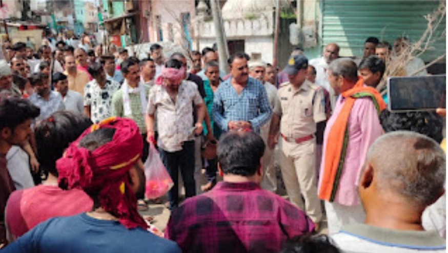 दमोह बांदकपुर में पुजारी की मौत के बाद उनके परिजनों ने विरोध प्रदर्शन किया।